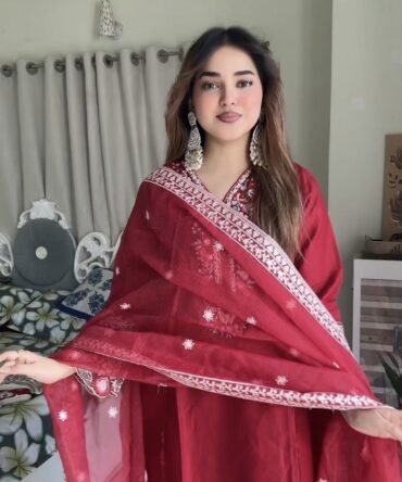লাক্সারি এলিগেন্ট রেড – মাশলিন সফট কটন থ্রিপিস