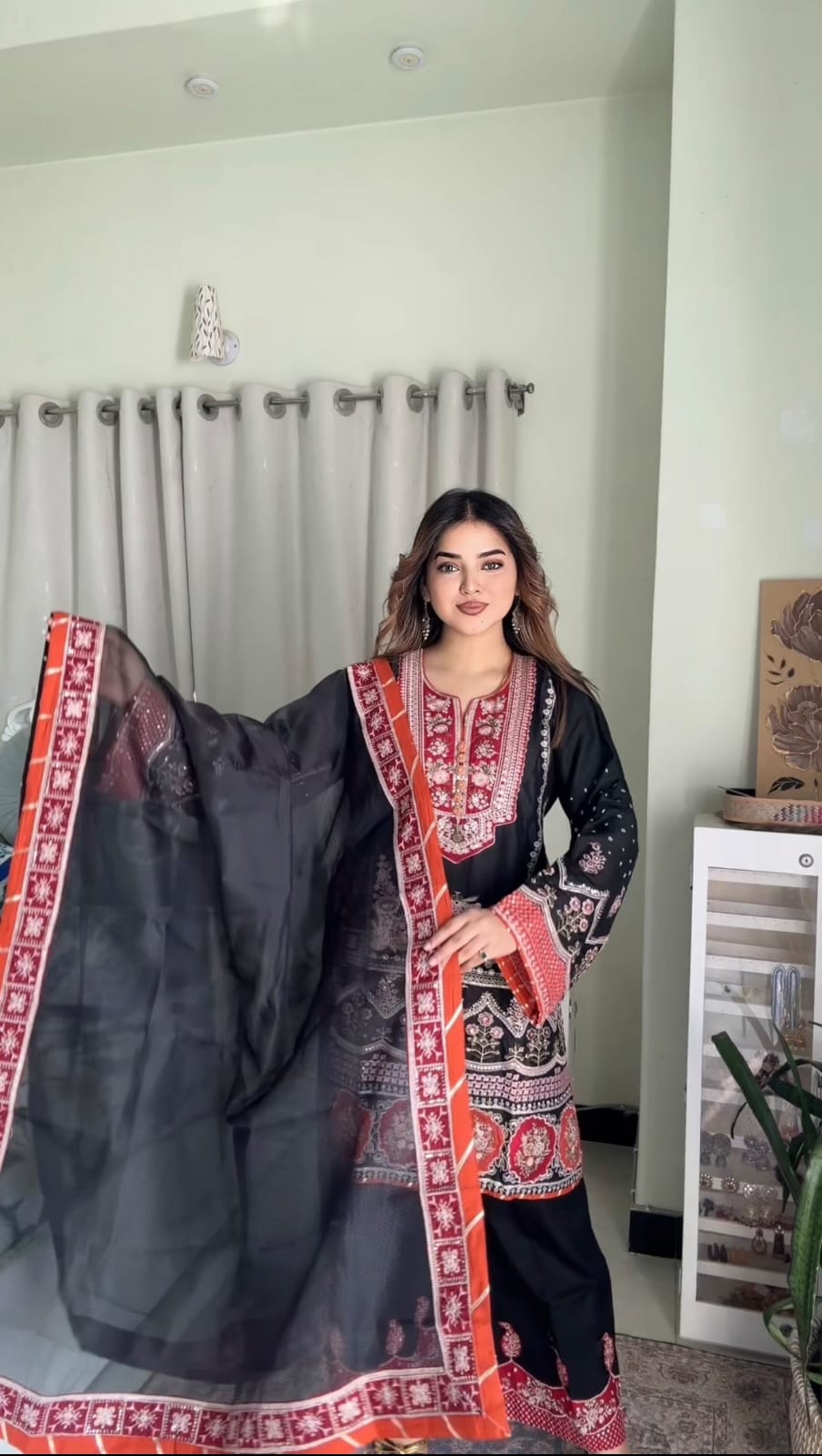 🔹 ওড়না: সফট কোটা, সিকোয়েন্স কাজ, কাটওয়ার্ক ও টাসেল ডিজাইন
