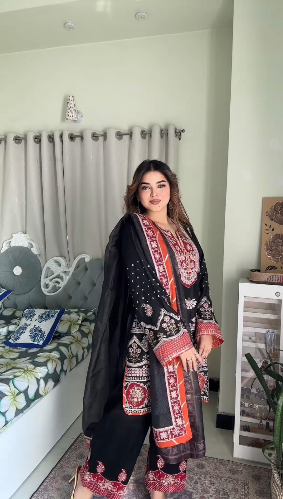 🔹 ফ্যাব্রিক: লাক্সারি মাশলিন সফট কটন, ভারী এমব্রয়ডারি ও সিকোয়েন্স কাজ