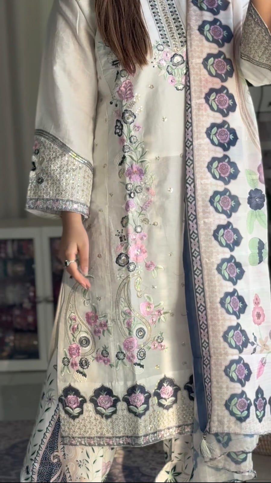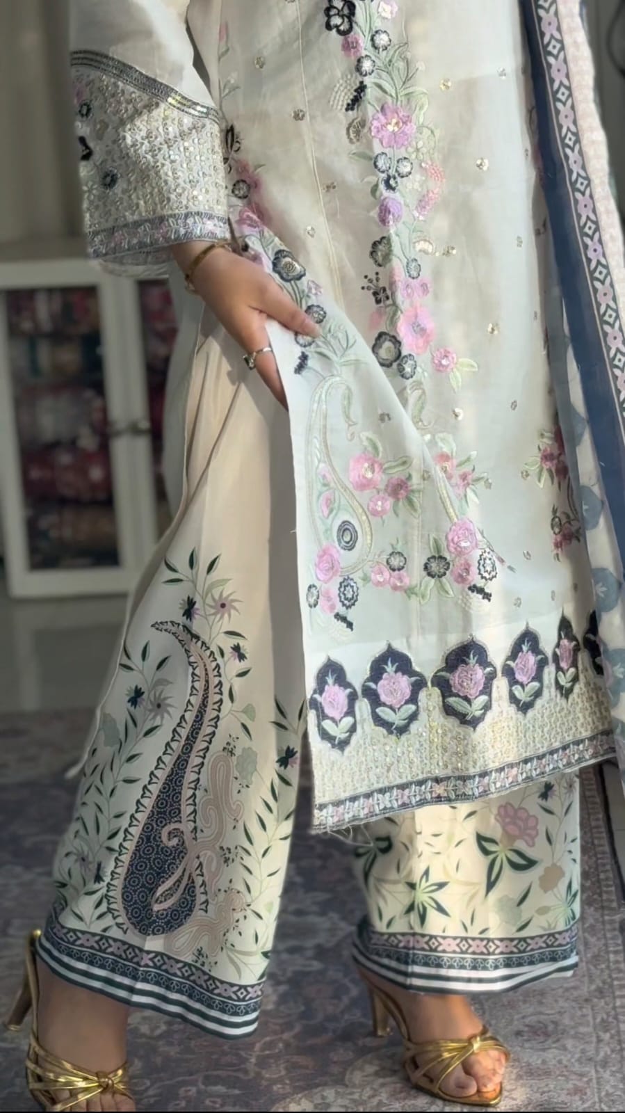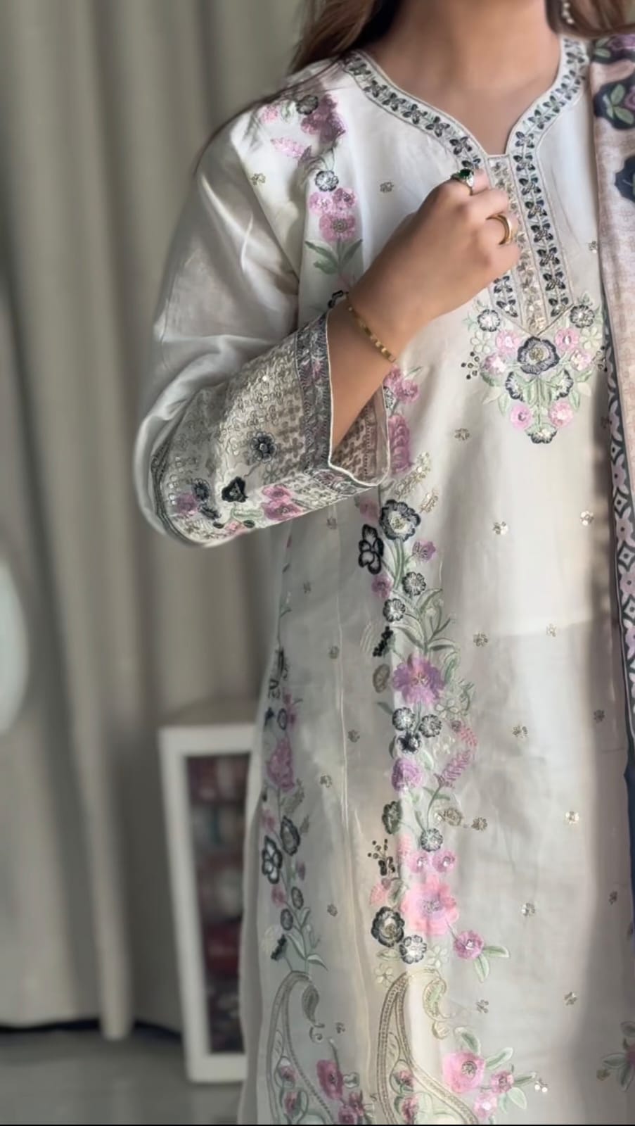 🔹 ড্রেস ফ্যাব্রিক: লাক্সারি মাশলিন সফট কটন, ভারী এমব্রয়ডারি ও সিকোয়েন্স কাজসহ (সেলাই করা, Ready to Wear)